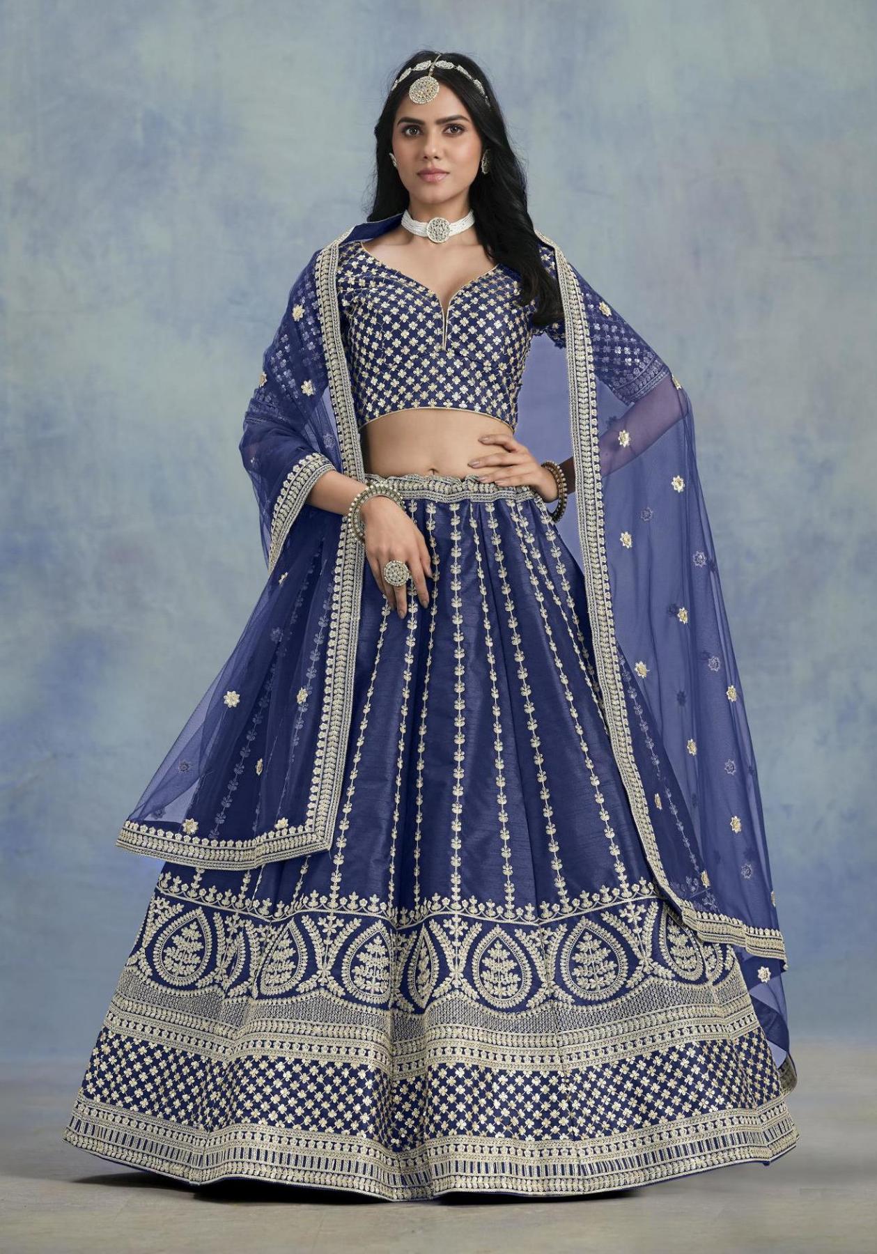 Buy Classy Silk Dark Slate Grey Lehenga Choli online.