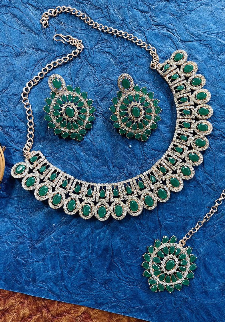 Details: 1 Necklace Set, 2 Earrings, 1 Mang Tikka.