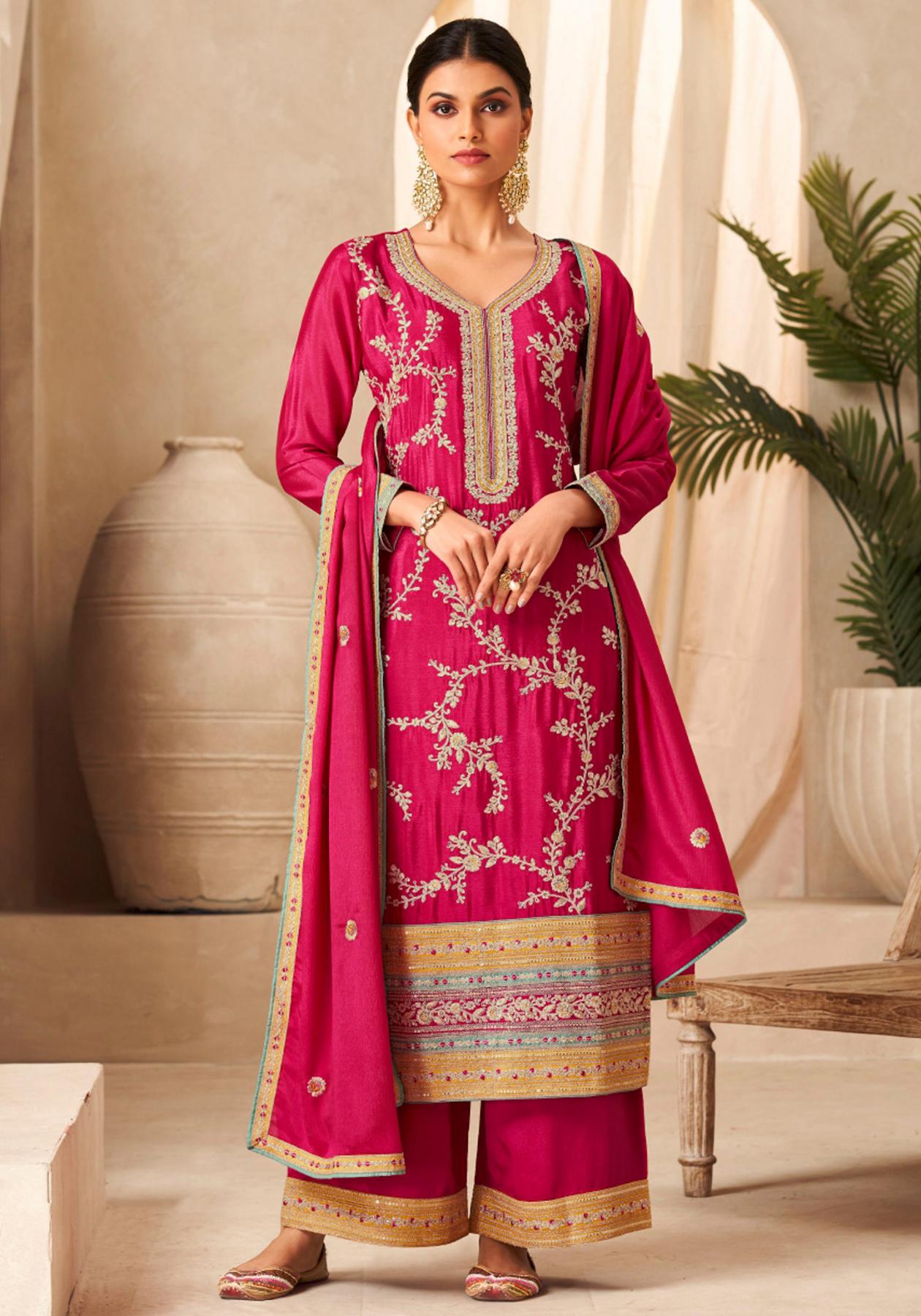 Buy Comely Chiffon Hot Pink Anarkali Salwar Kameez online.