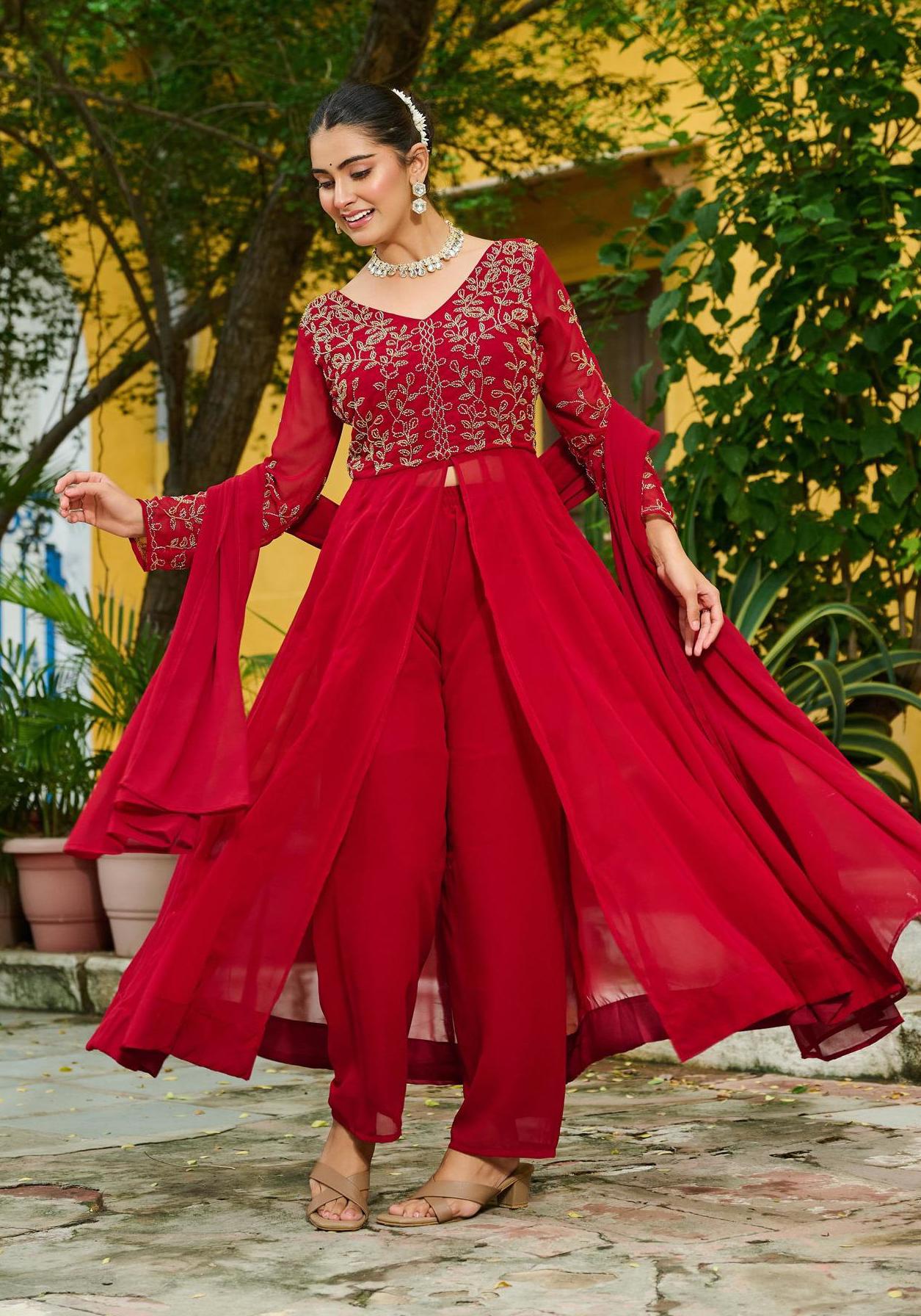 Buy Comely Georgette Dark Red Readymade Salwar Kameez online.