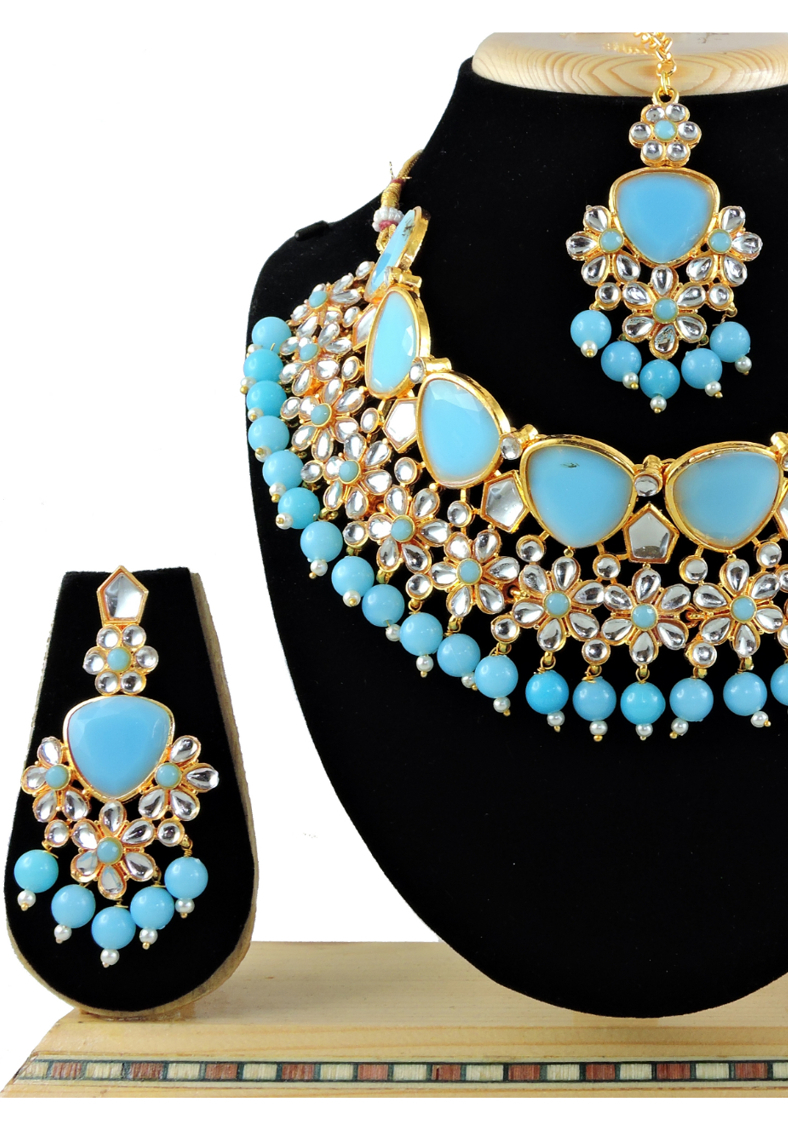 Buy Comely Medium Aqua Marine Necklace Set online.