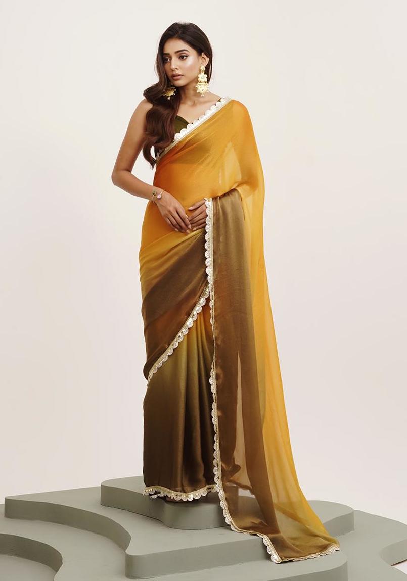 In Pre-stitched saree you will get the saree with stitched plates, belt on the waist and adjustable hooks. So you can wear the saree like a skirt