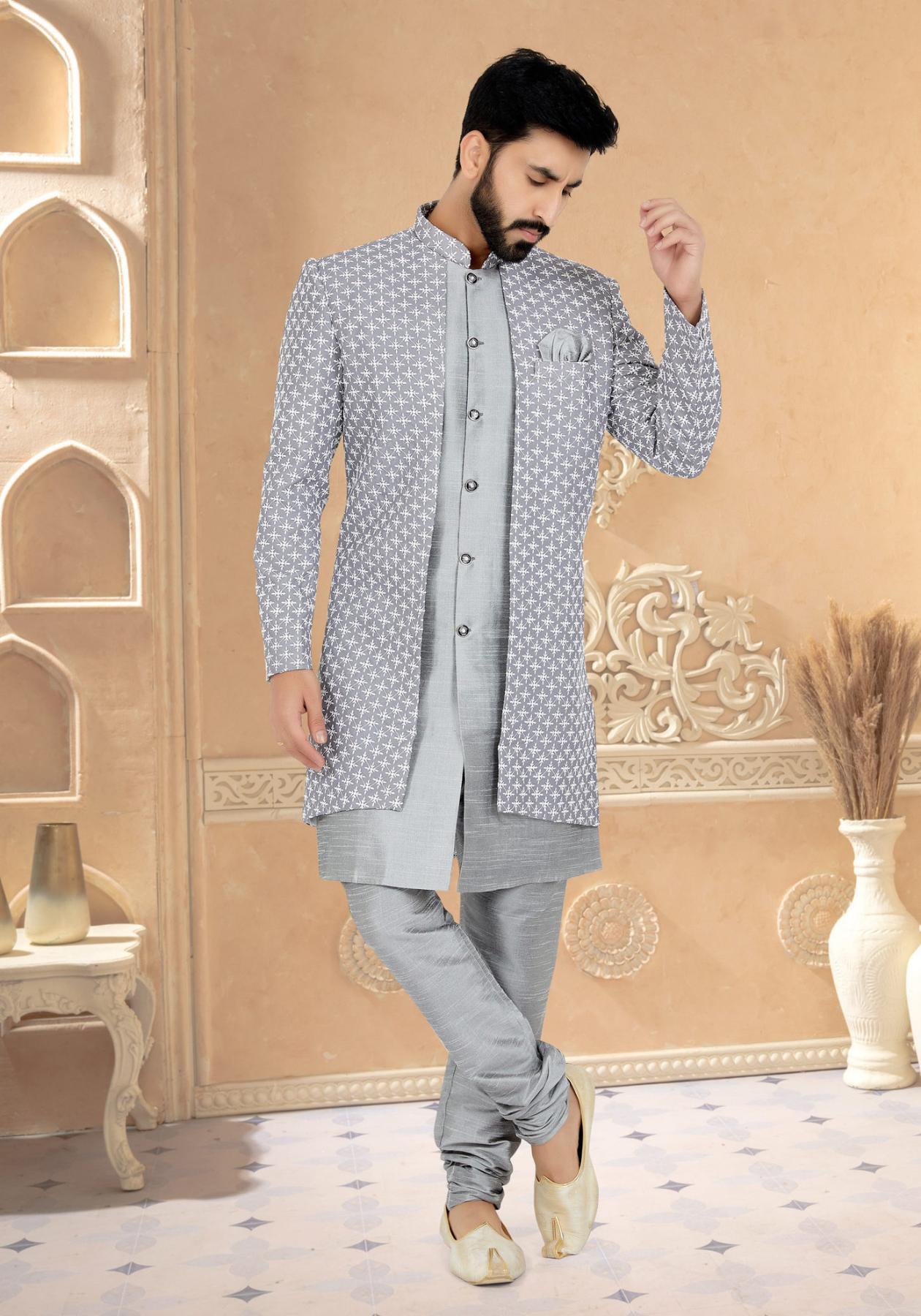 Buy Comely Silk Light Slate Grey Indo Western online.