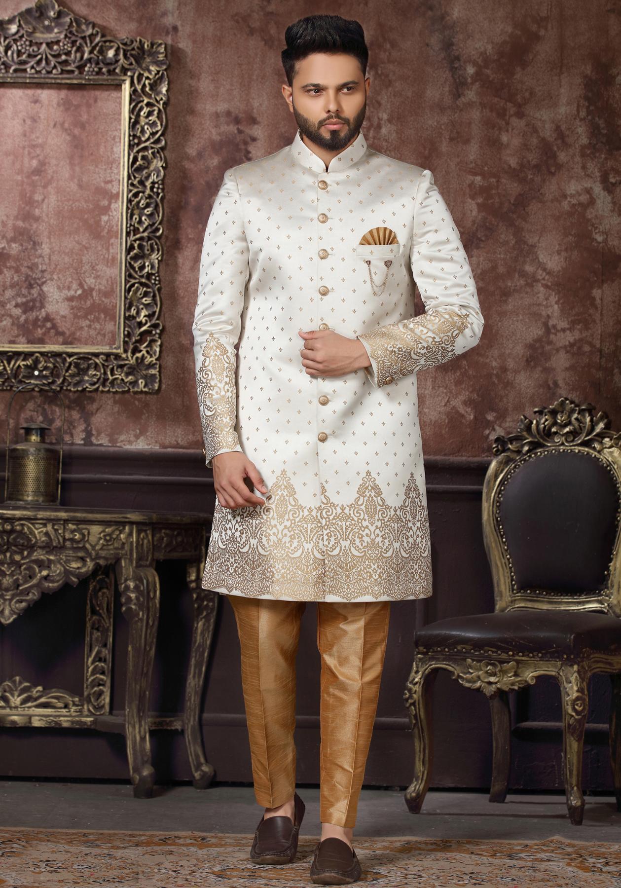 Picture of Comely Silk Off White Indo Western Picture of Comely Silk Off White Indo Western