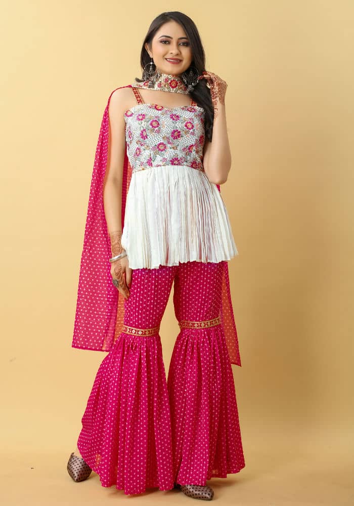 Bottom Fabric:Georgette Pleated With Crepe Inner.
