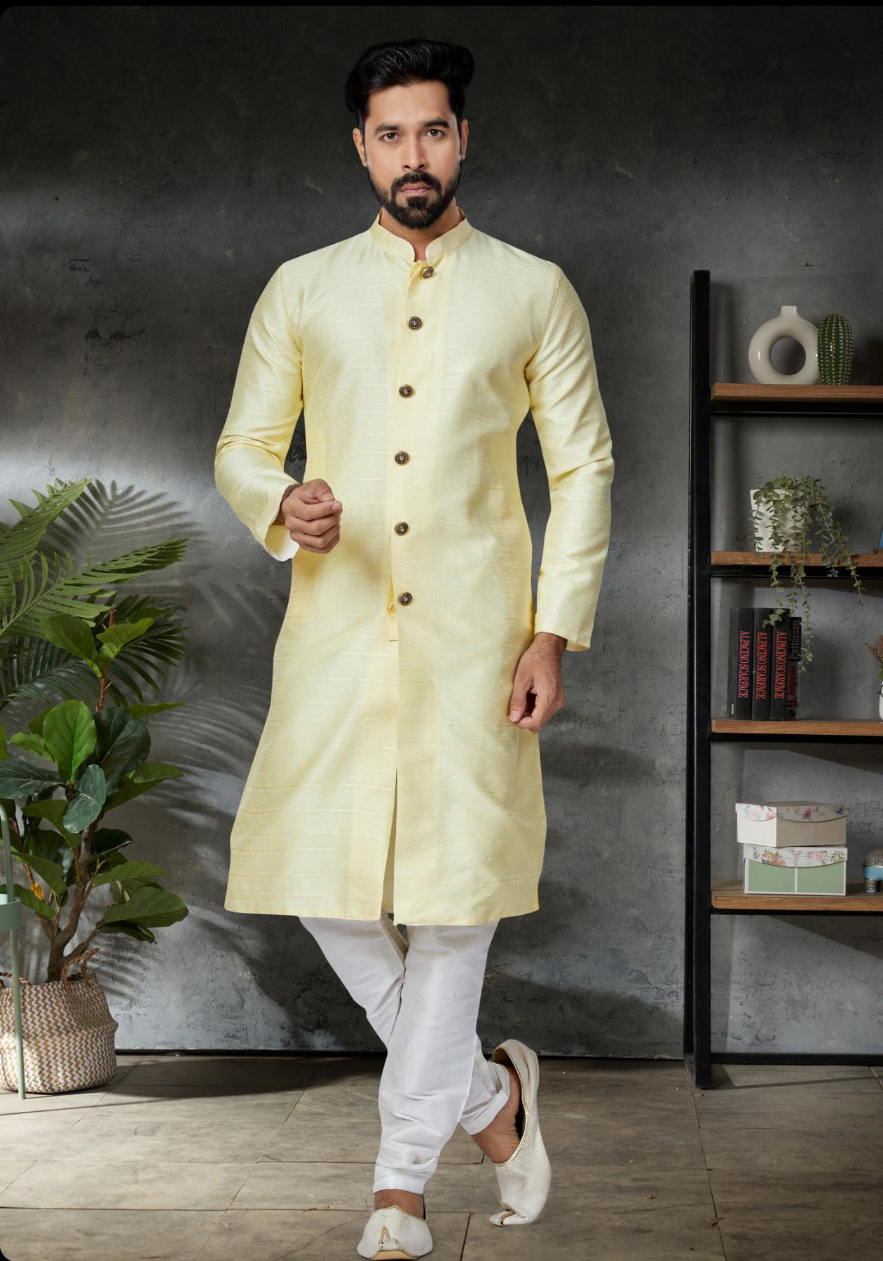 Buy Cotton & Georgette & Silk Lemon Chiffon Kurtas online.