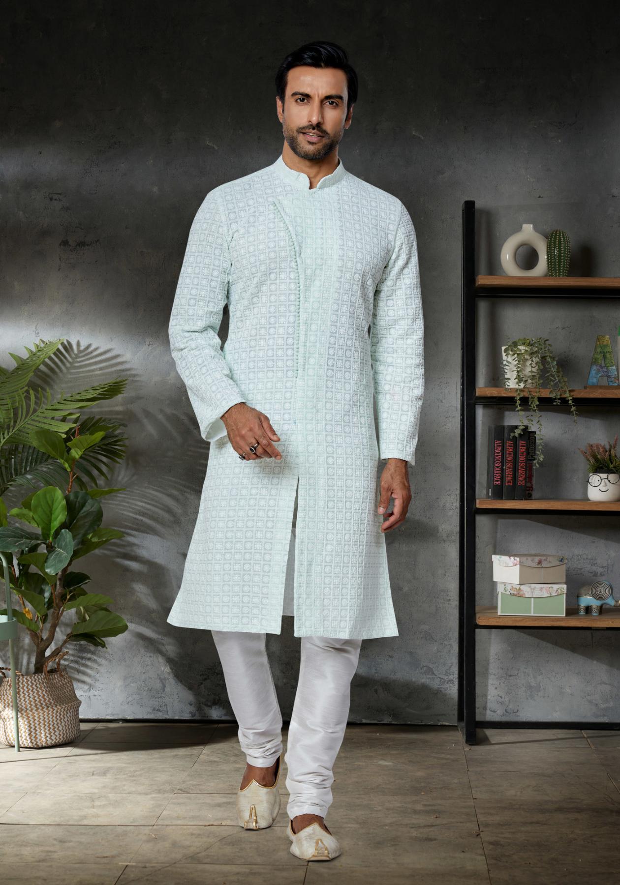 Buy Cotton & Georgette & Silk Light Steel Blue Kurtas online.