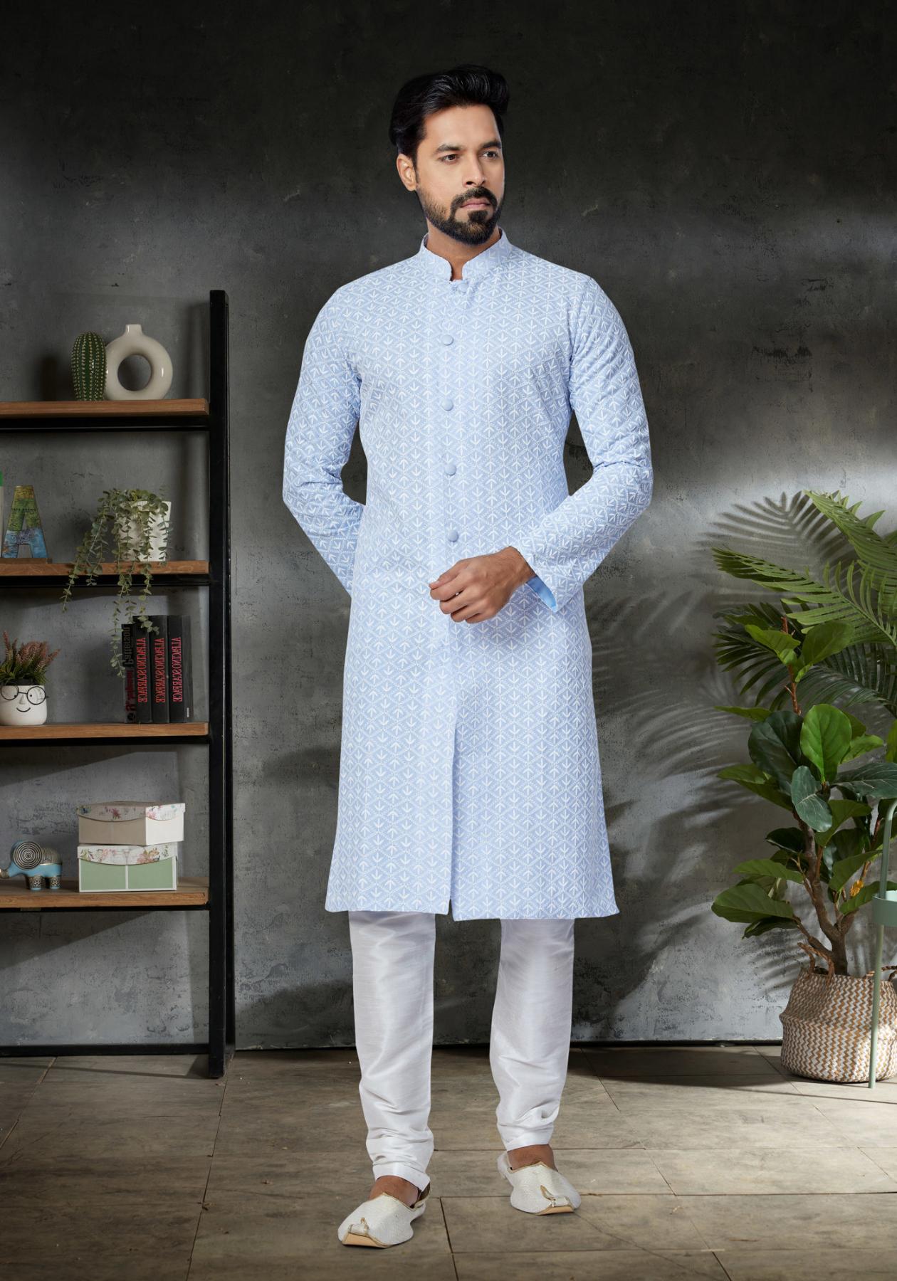 Buy Cotton & Georgette & Silk Light Steel Blue Kurtas online.