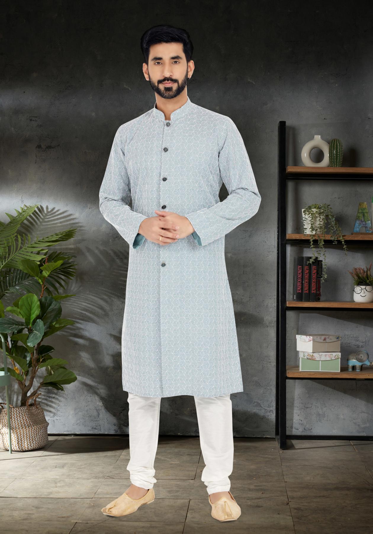 Buy Cotton & Georgette & Silk Light Steel Blue Kurtas online.