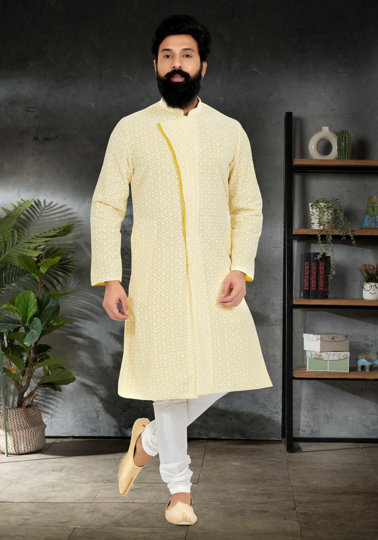 Buy Cotton & Georgette & Silk Light Yellow Kurtas online.