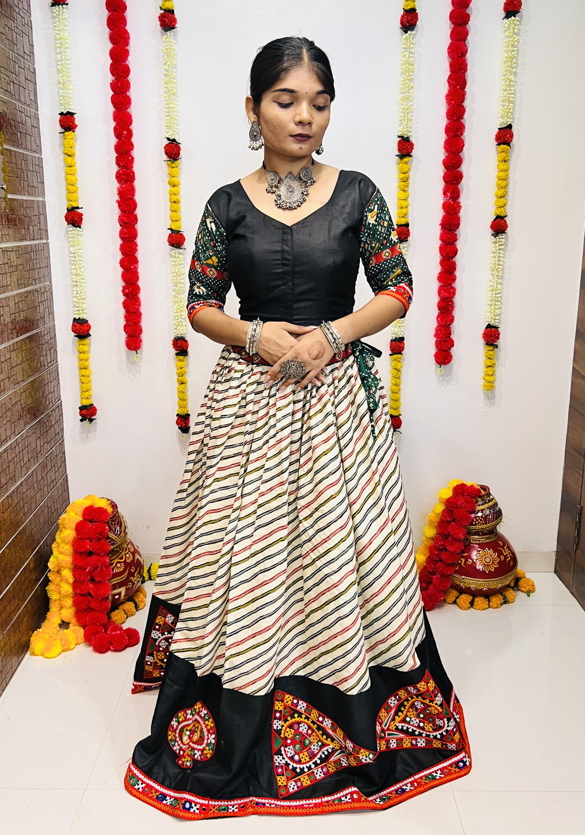 Buy Cotton & Silk Black Readymade Lehenga Choli online.