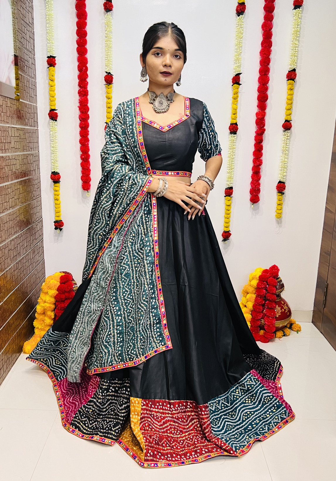 Buy Cotton & Silk Black Readymade Lehenga Choli online.