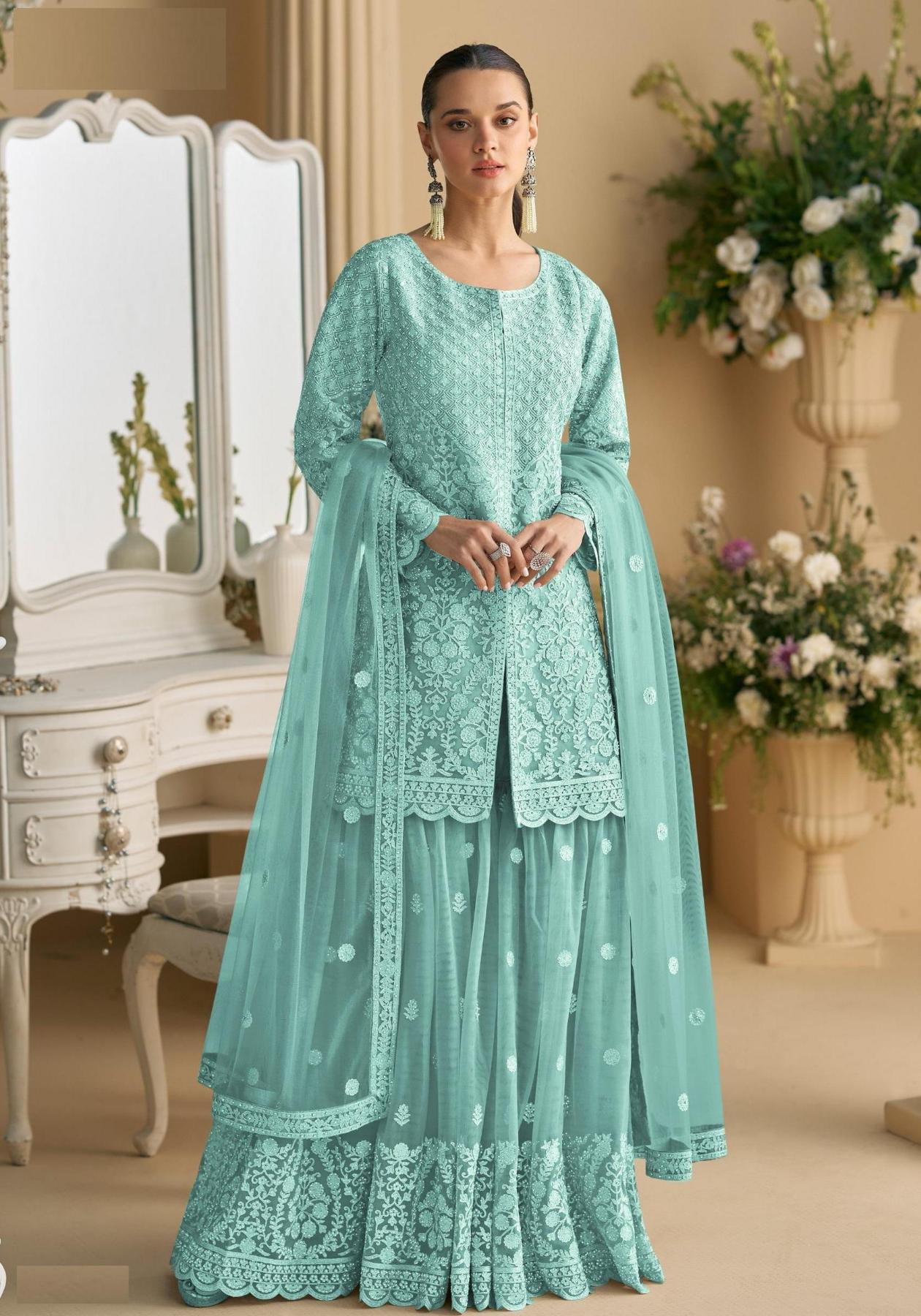 Normally size is measured between the underarm stitching lines from the stressed kameez.