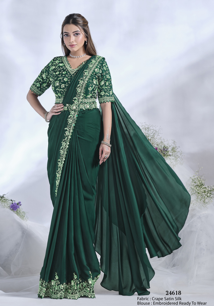 In Pre-stitched saree you will get the saree with stitched plates, belt on the waist and adjustable hooks. So you can wear the saree like a skirt