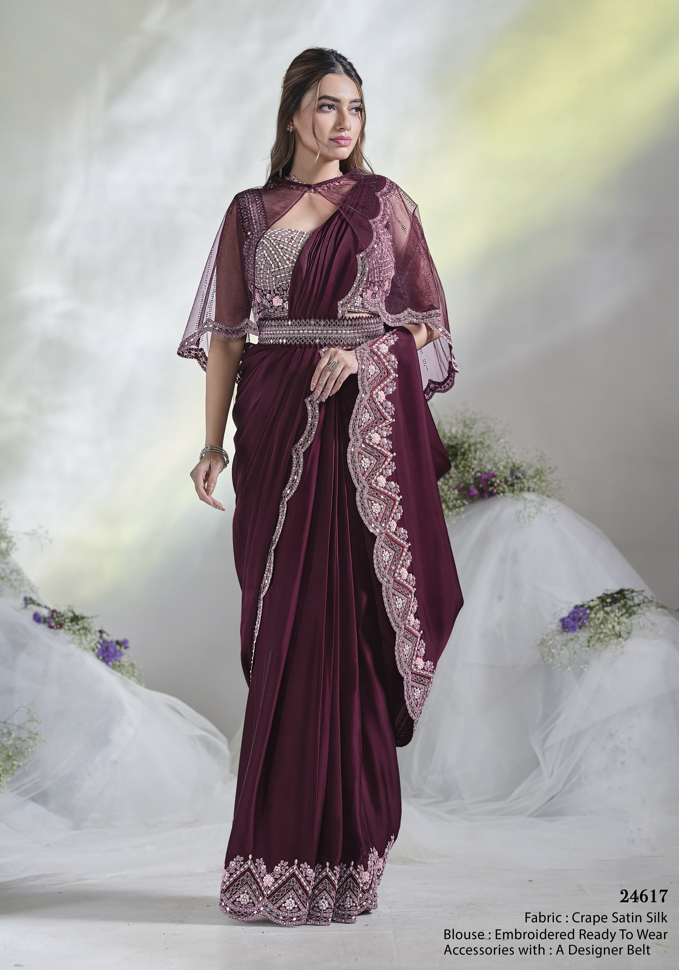 Buy Crepe & Satin & Silk Dark Olive Green Lehenga Sarees online.