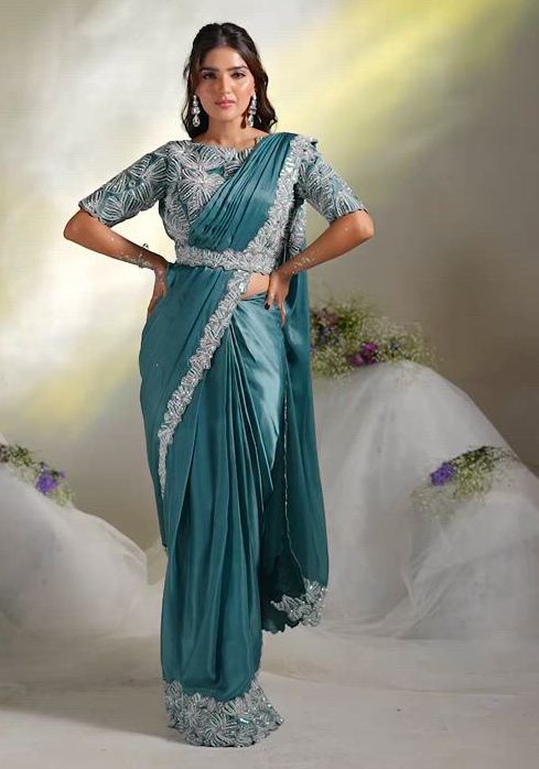 Buy Crepe & Satin & Silk Dark Slate Grey Lehenga Sarees online.
