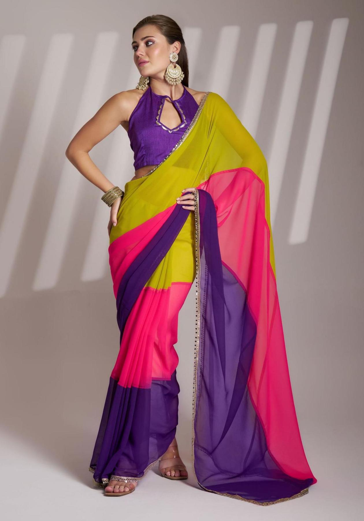 In Pre-stitched saree you will get the saree with stitched plates, belt on the waist and adjustable hooks. So you can wear the saree like a skirt