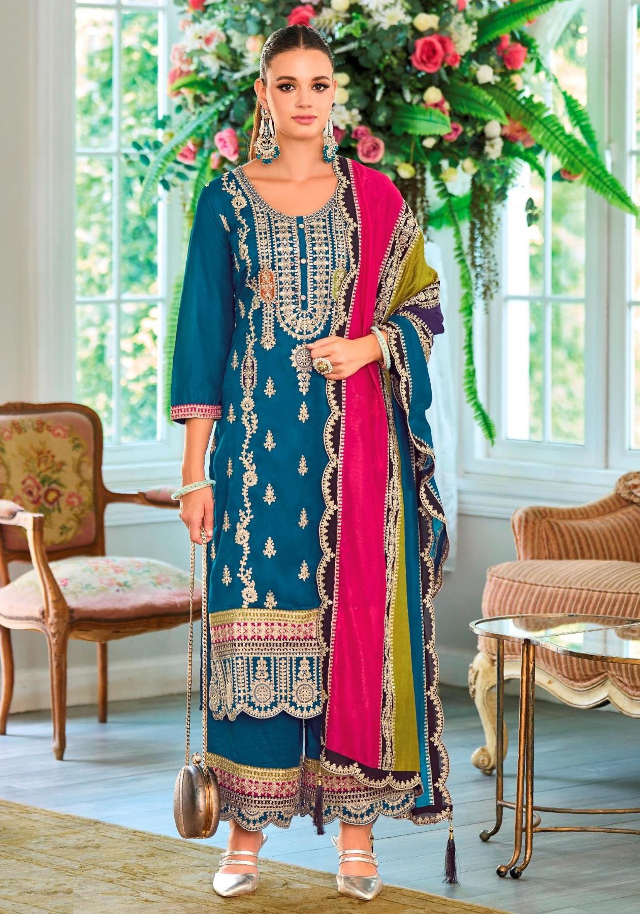 Normally size is measured between the underarm stitching lines from the stressed kameez.