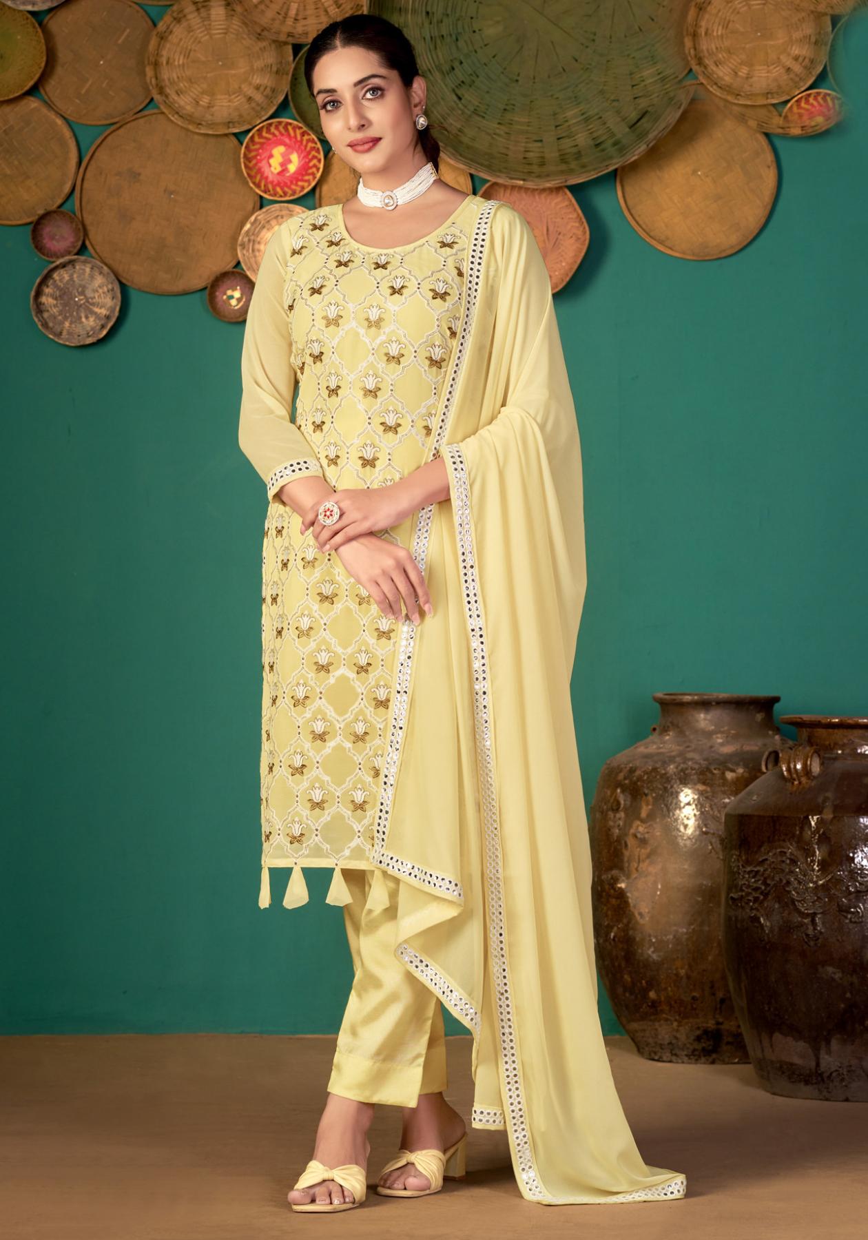 Buy Delightful Georgette Khaki Straight Cut Salwar Kameez online.
