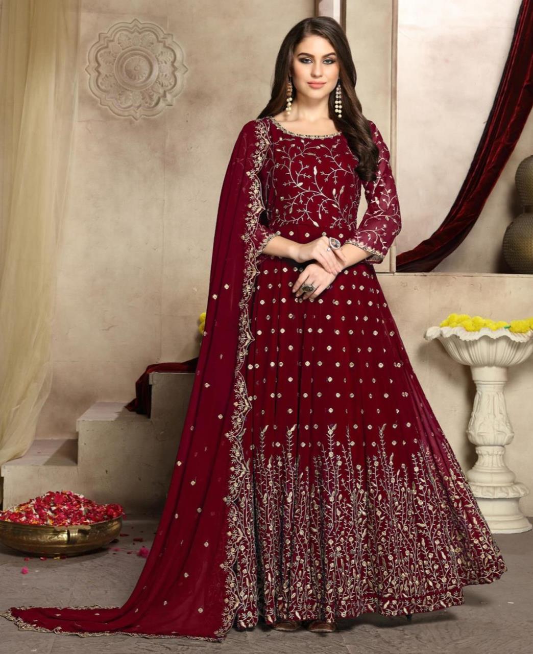 Buy Delightful Maroon Anarkali Salwar Kameez.