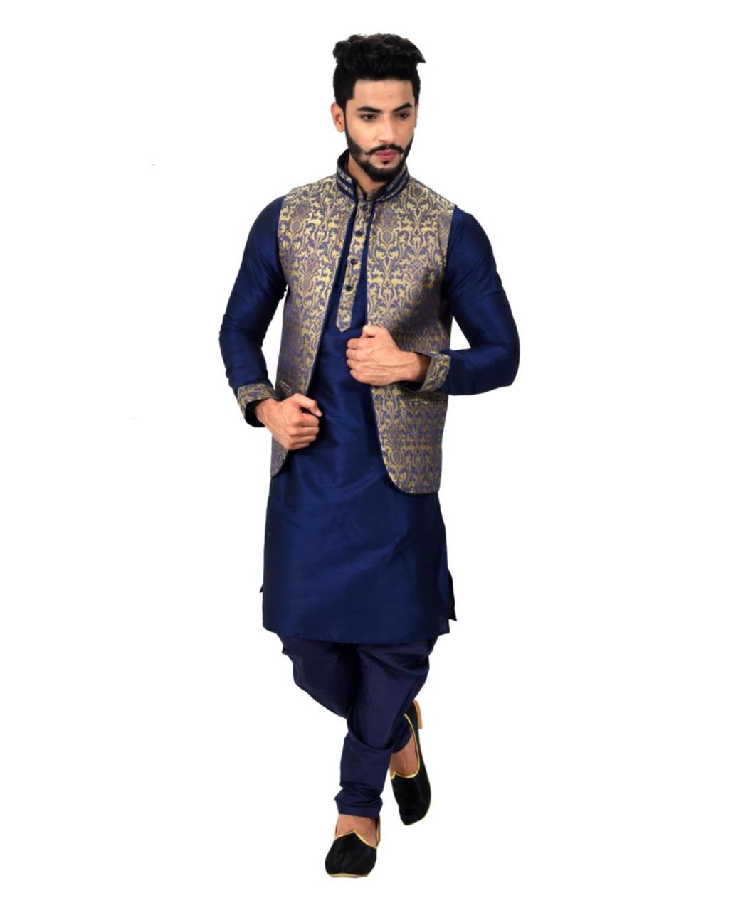 Fabric: Kurta- Art silk, Nehru Jacket - Brocade silk, Bottom - Art Silk.