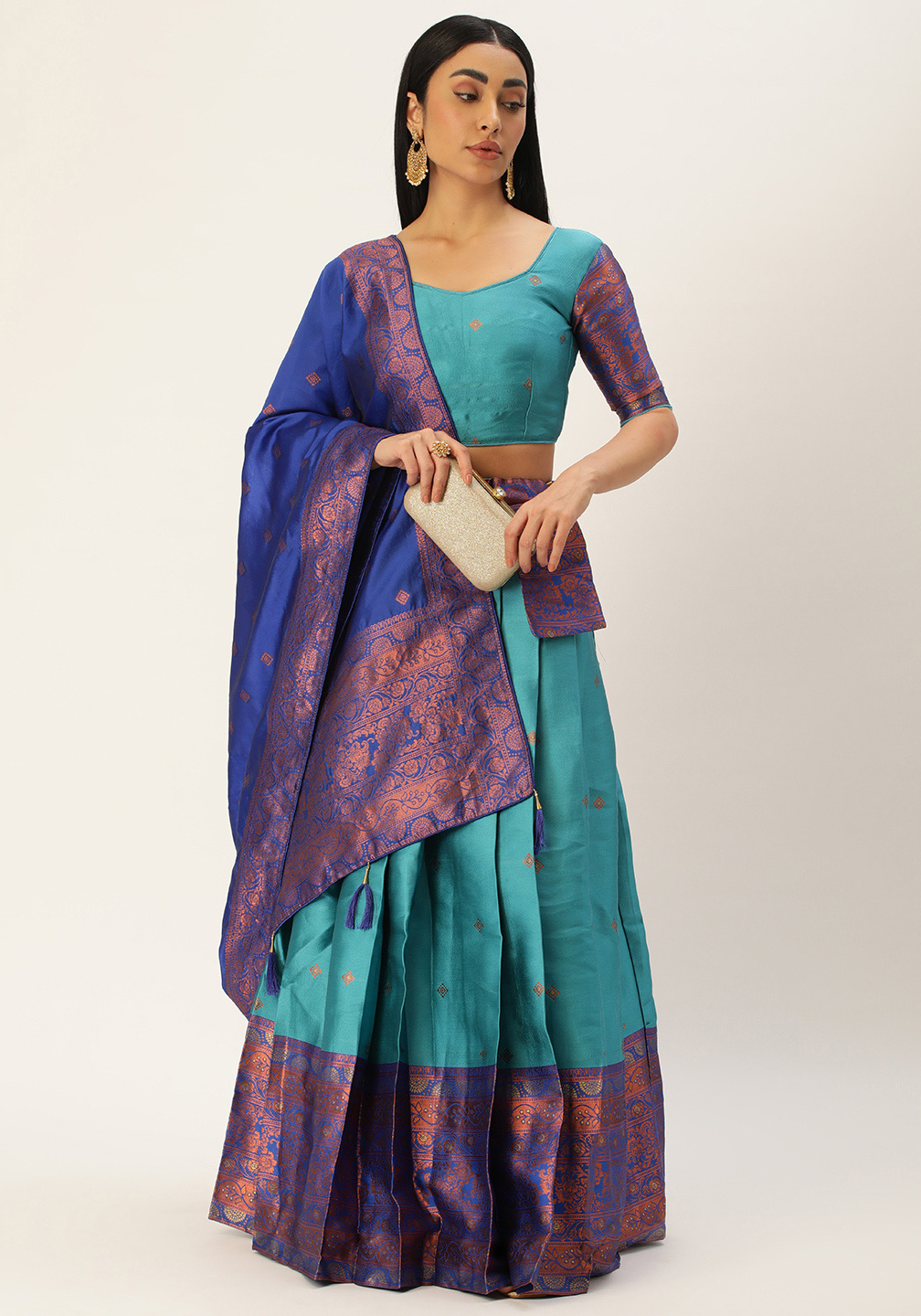 Buy Delightful Silk Midnight Blue Lehenga Choli online.