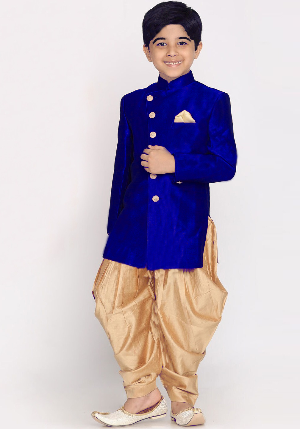 Buy Delightful Silk Navy Blue Kids Kurta Pyjama online.