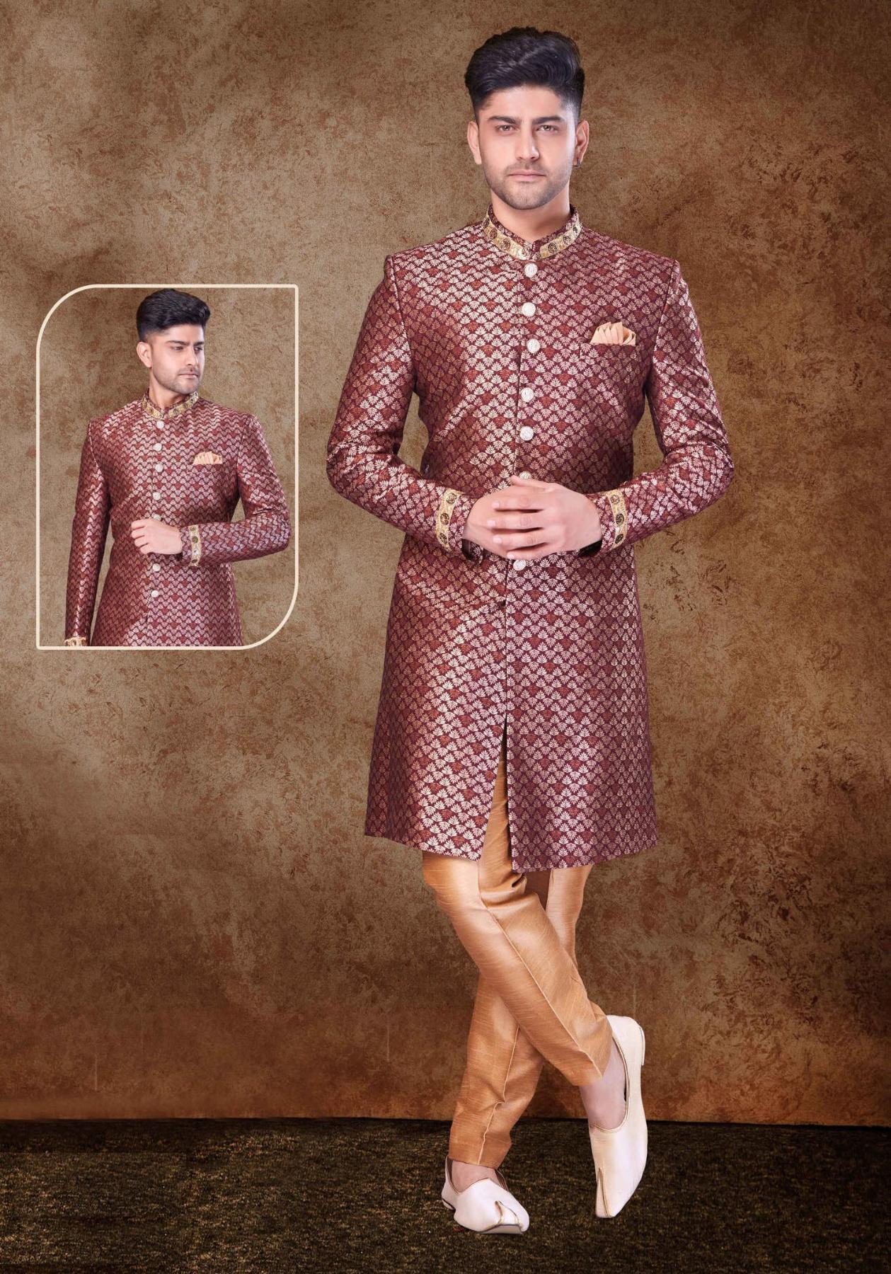Picture of Delightful Silk Rosy Brown Sherwani Picture of Delightful Silk Rosy Brown Sherwani