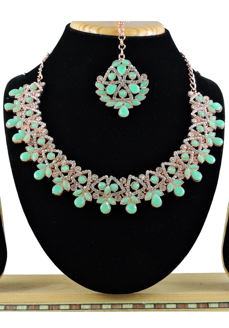 Details: 1 Necklace Set, 2 Earrings, 1 Mang Tikka.