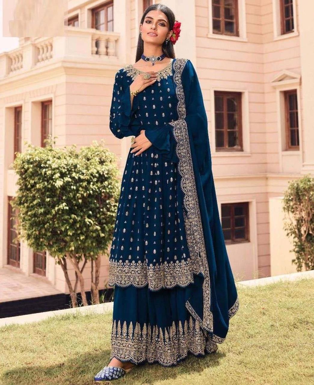 Normally size is measured between the underarm stitching lines from the stressed kameez.