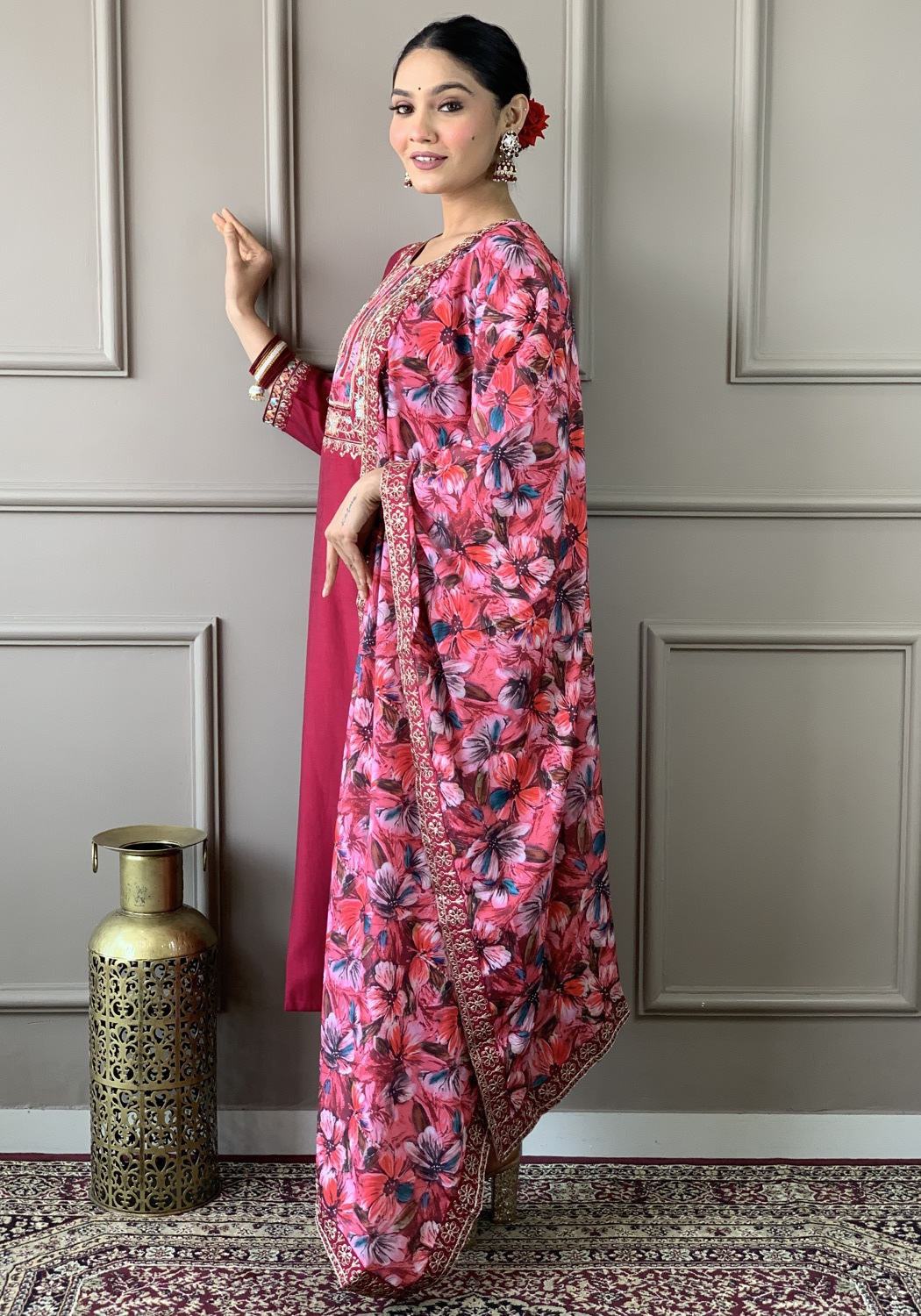 Elegant Chiffon Crimson Readymade Salwar Kameez