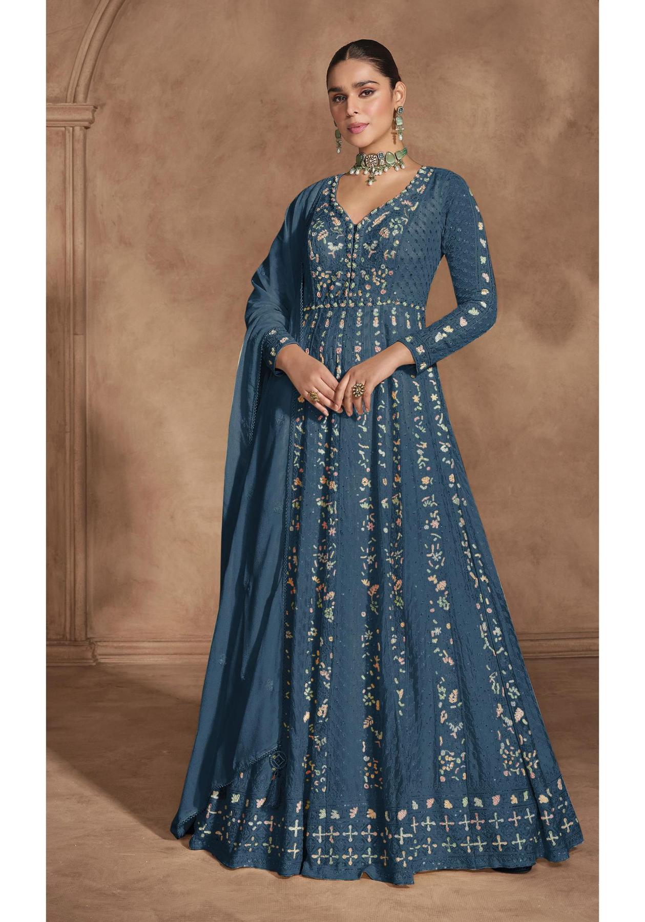 Buy Elegant Chiffon Midnight Blue Anarkali Salwar Kameez online.