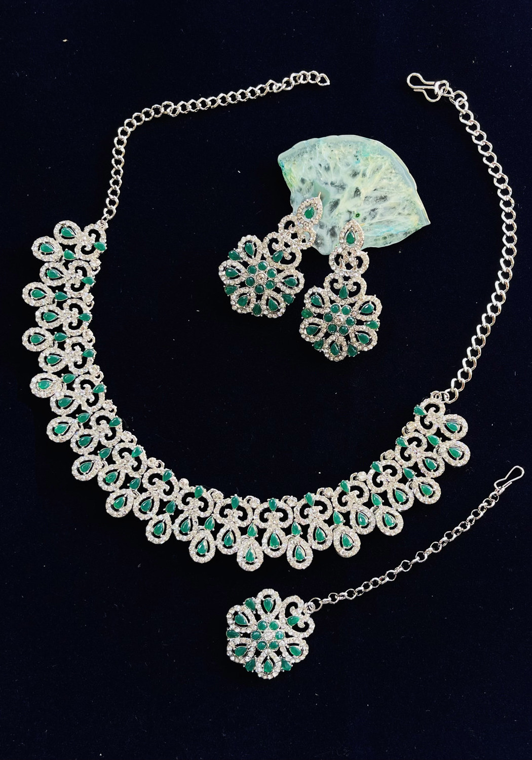 Details: 1 Necklace Set, 2 Earrings, 1 Mang Tikka.