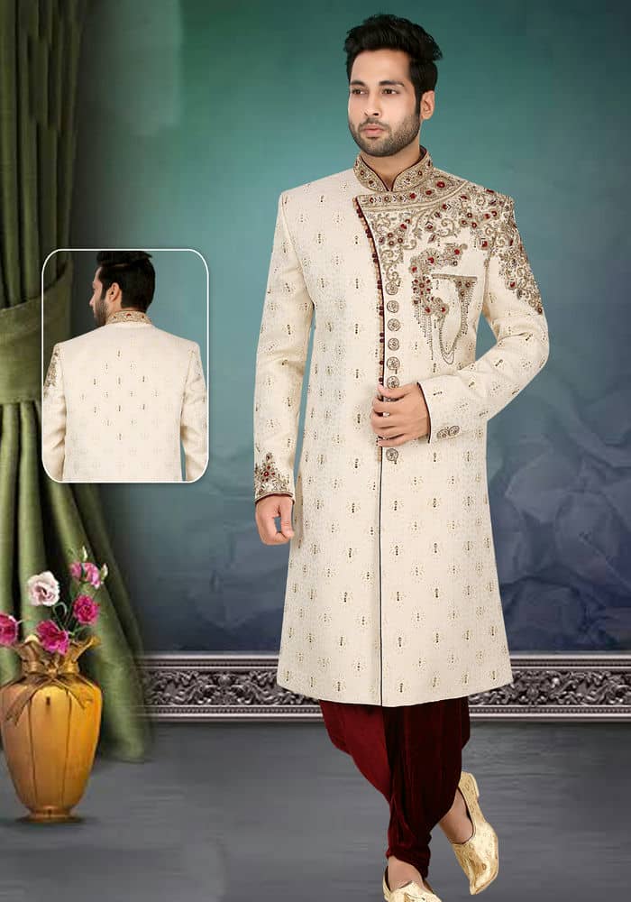 Picture of Elegant Georgette Beige Sherwani Picture of Elegant Georgette Beige Sherwani
