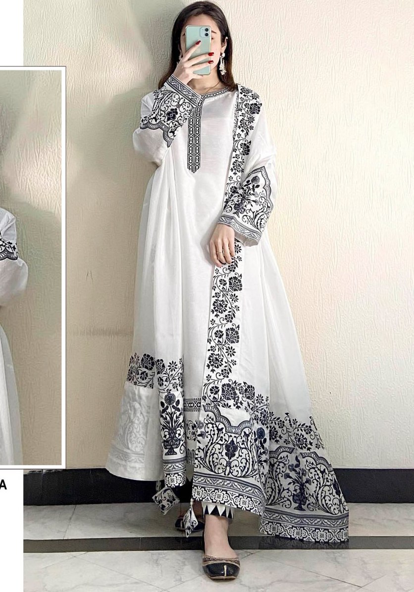 Buy Elegant Georgette Off White Anarkali Salwar Kameez online.