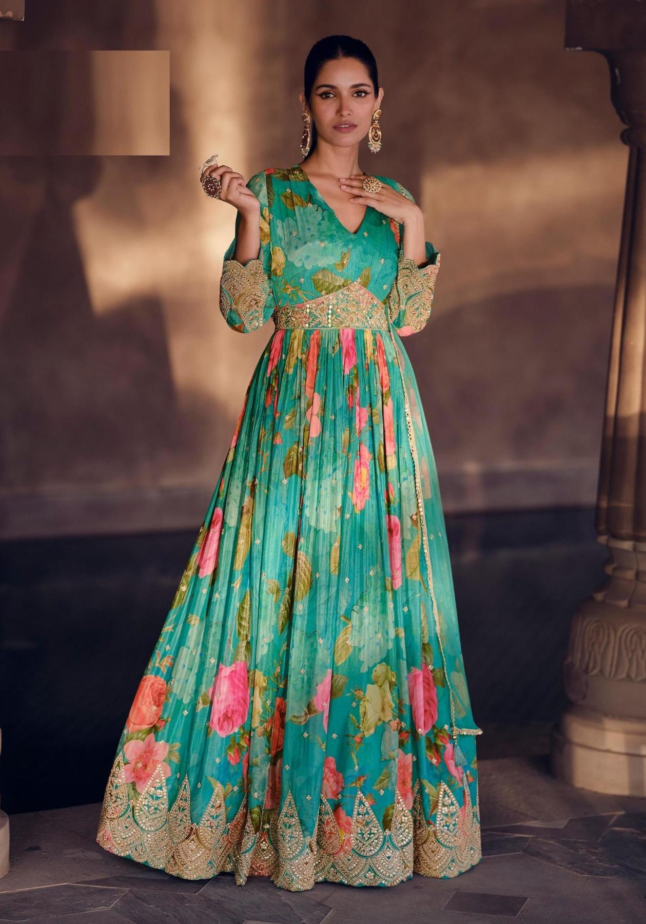 Elegant Georgette Teal Anarkali Salwar Kameez