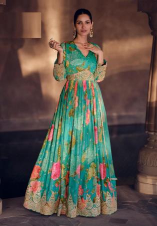 Buy Elegant Georgette Teal Anarkali Salwar Kameez online.