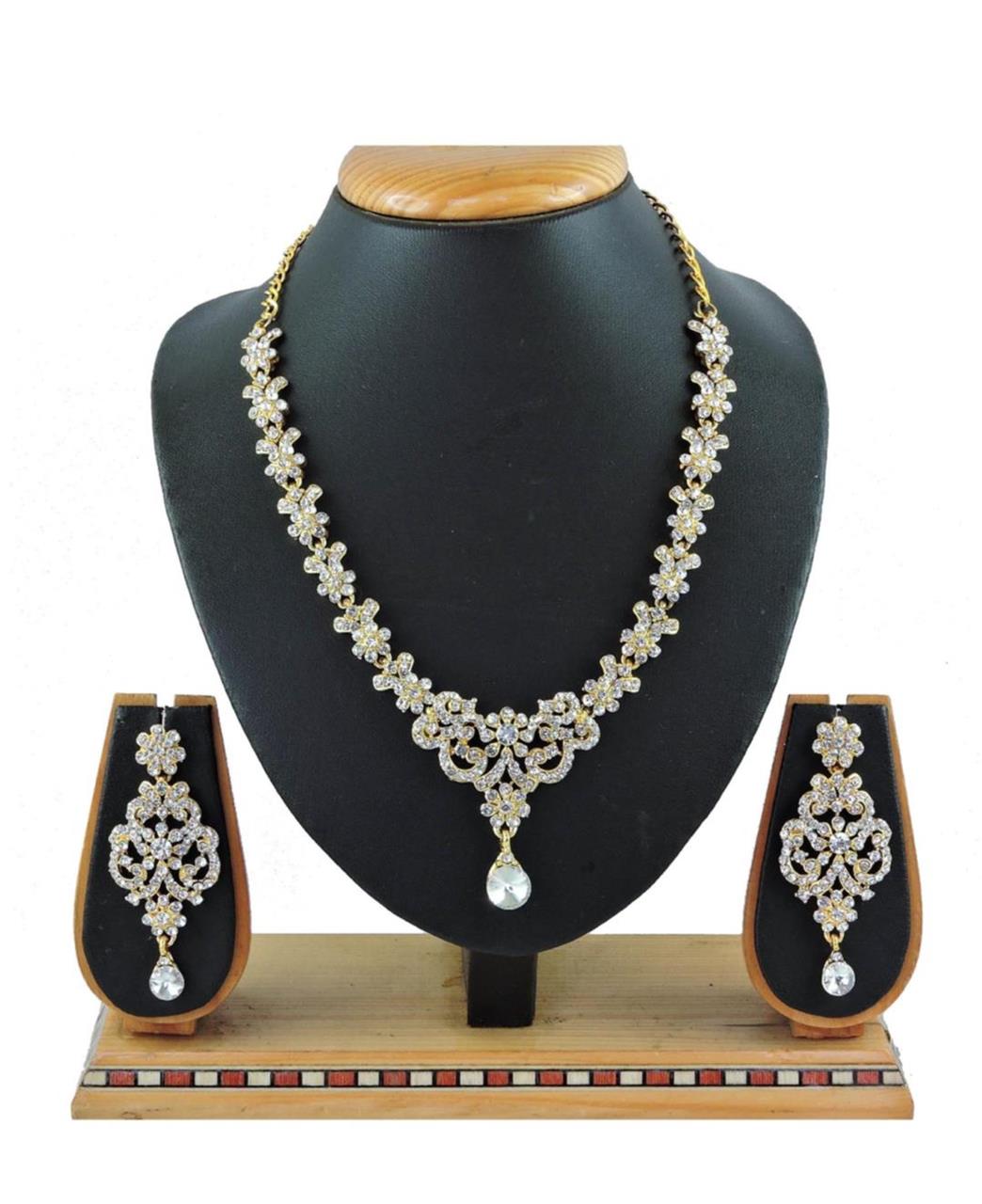 Buy Elegant Golden & White Necklace Set Jewellery Neckless For Women
