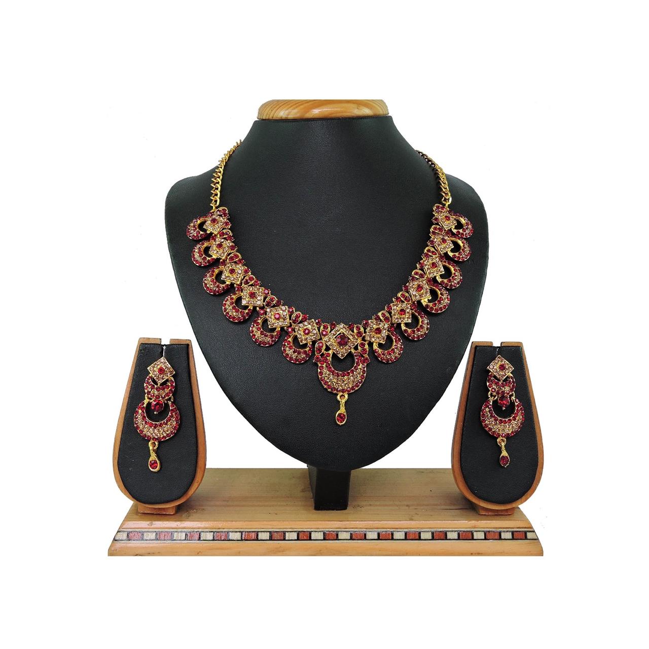 Buy Elegant Maroon & Golden Necklace Set Jewellery Neckless For Women