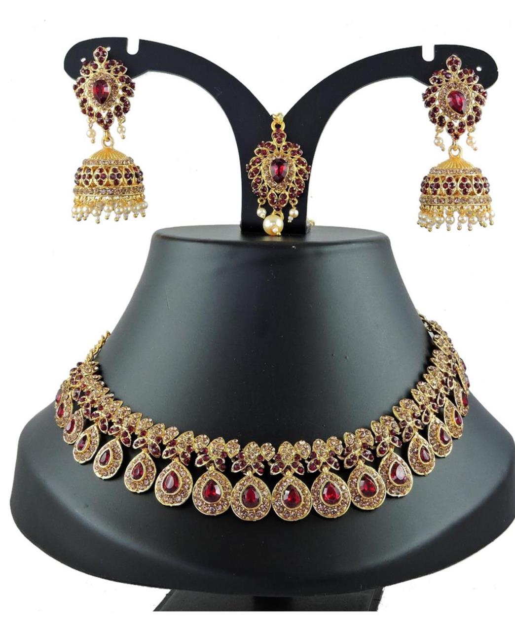 Buy Elegant Maroon Necklace Set Jewellery Neckless For Women