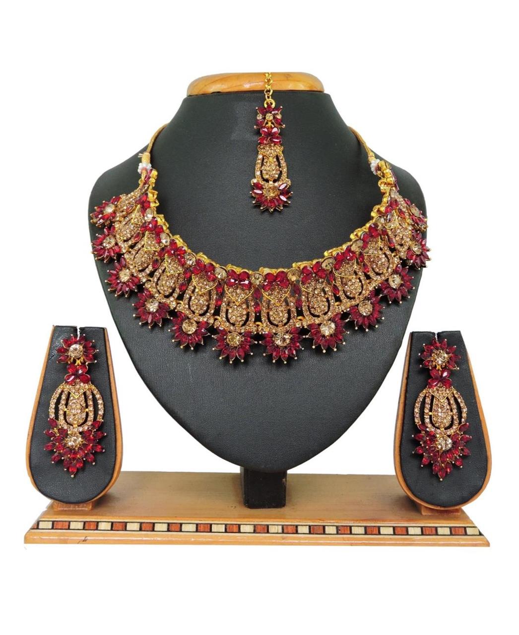 Buy Elegant Maroon Necklace Set Jewellery Neckless For Women
