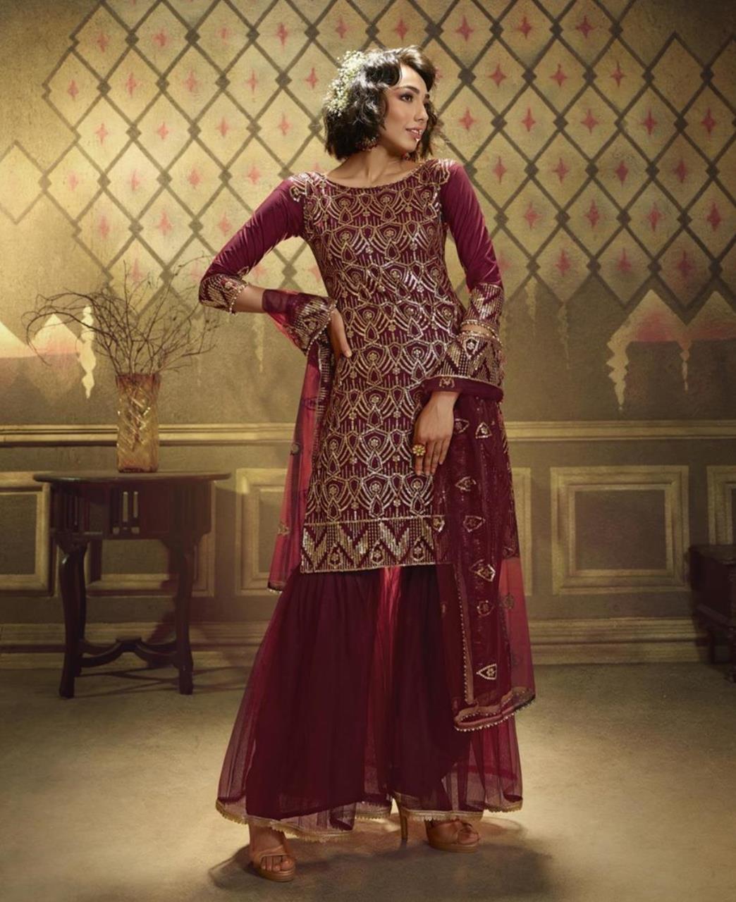 Normally size is measured between the underarm stitching lines from the stressed kameez.