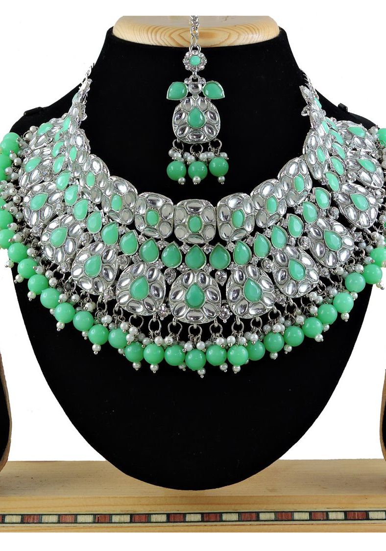 Buy Elegant Medium Sea Green Necklace Set online.