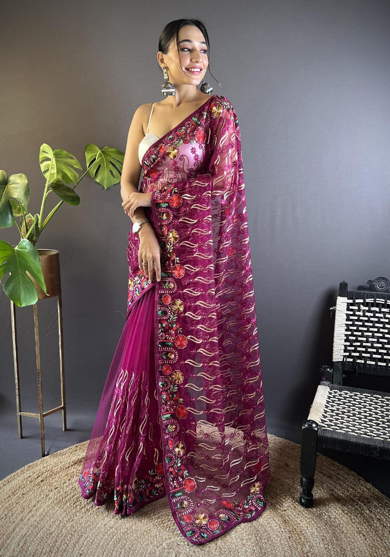 In Pre-stitched saree you will get the saree with stitched plates, belt on the waist and adjustable hooks. So you can wear the saree like a skirt