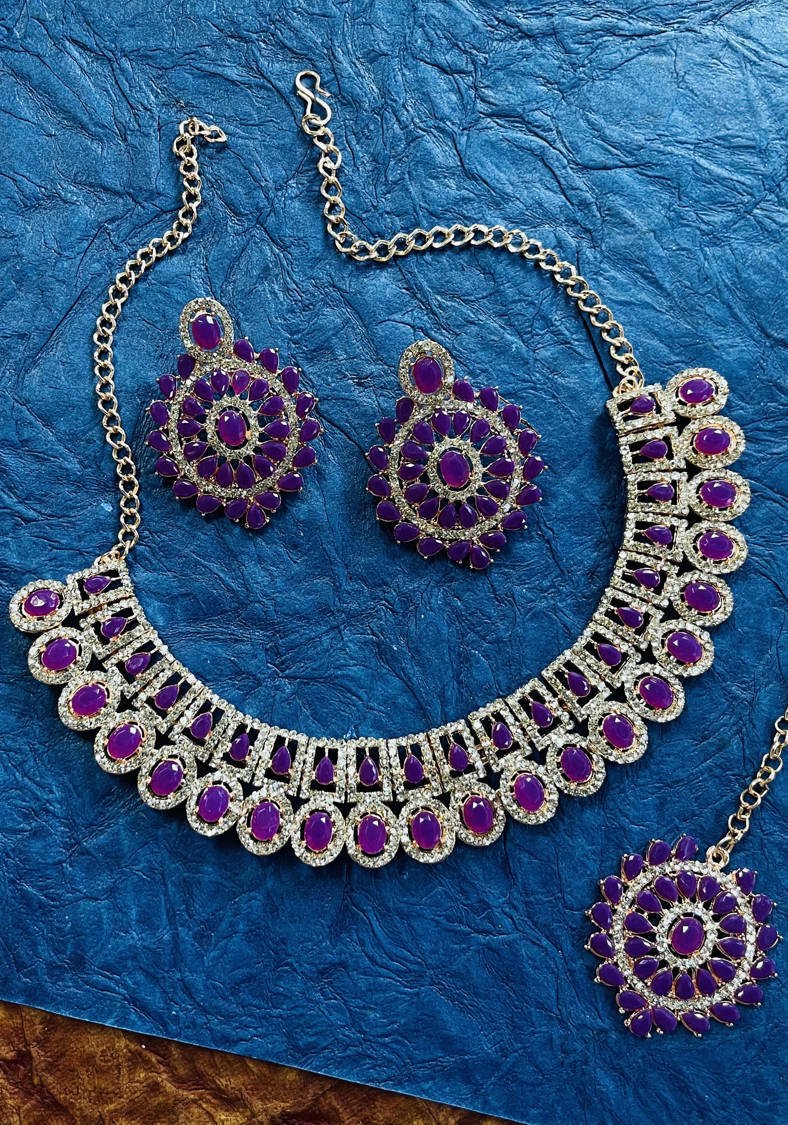 Details: 1 Necklace Set, 2 Earrings, 1 Mang Tikka.