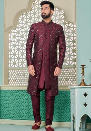 Picture of Elegant Silk Maroon Indo Western Picture of Elegant Silk Maroon Indo Western
