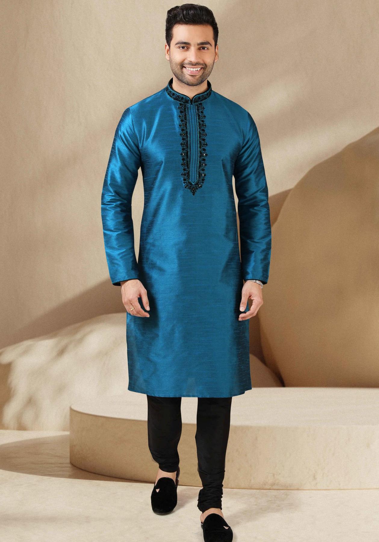 Buy Elegant Silk Midnight Blue Kurtas online.