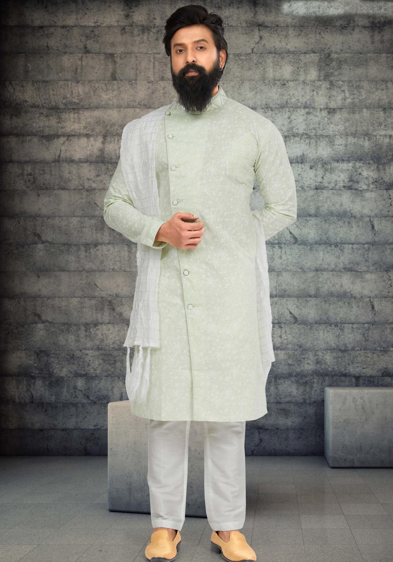 Picture of Enticing Cotton & Silk Off White Indo Western Picture of Enticing Cotton & Silk Off White Indo Western