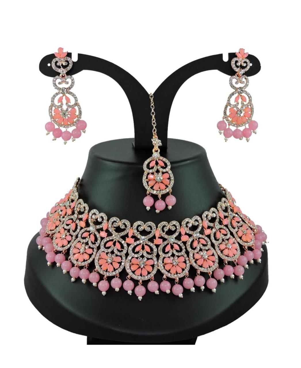 Buy Marvelous Light Pink Necklace Set Jewellery Neckless For Women Color: Light Pink. Work: Stone. Material: Alloy.