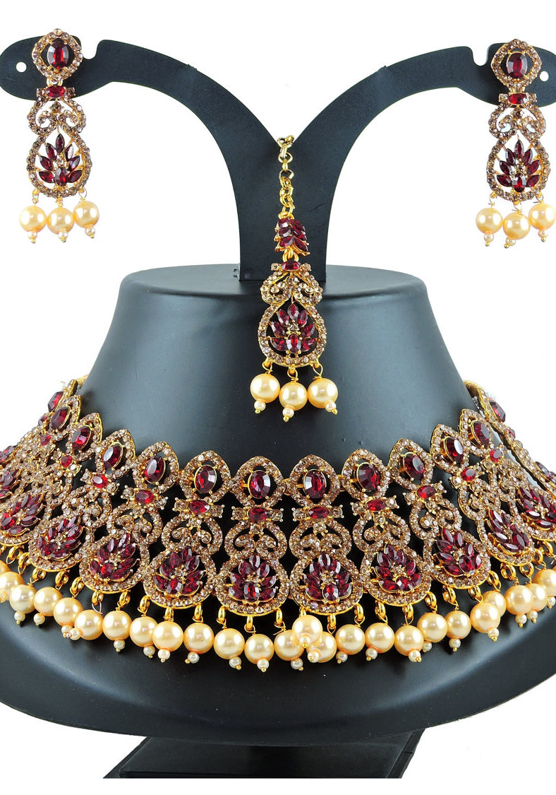Picture of Enticing Maroon Necklace Set Picture of Enticing Maroon Necklace Set